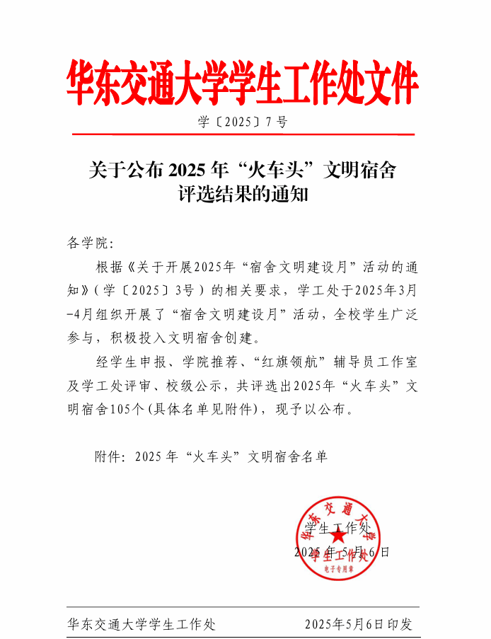 喜报|我院两个宿舍获评“火车头”文明宿舍