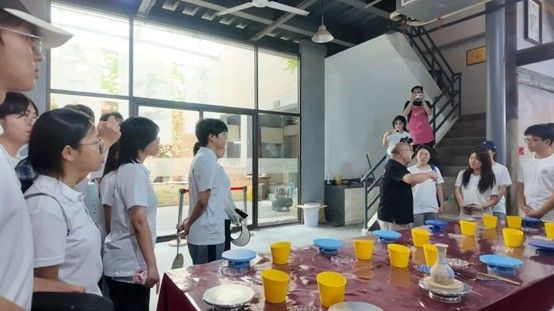 在陶艺馆内,陶艺师傅对关于陶瓷起源、景德镇“瓷都”文化历史及工艺流程进行了讲解。通过一件件造型各异、工艺精湛的瓷器展示,大家直观感受到了中国陶瓷艺术的精致与深厚文化底蕴。随后,同学们进入陶艺操作区,亲自动手体验陶瓷拉坯、上色绘图等环节,留下属于自己的创意印记。除陶艺体验外,同学们还参与了传统漆扇的手工制作,上面寄托着同学们对传统工艺的创意表达与热爱。