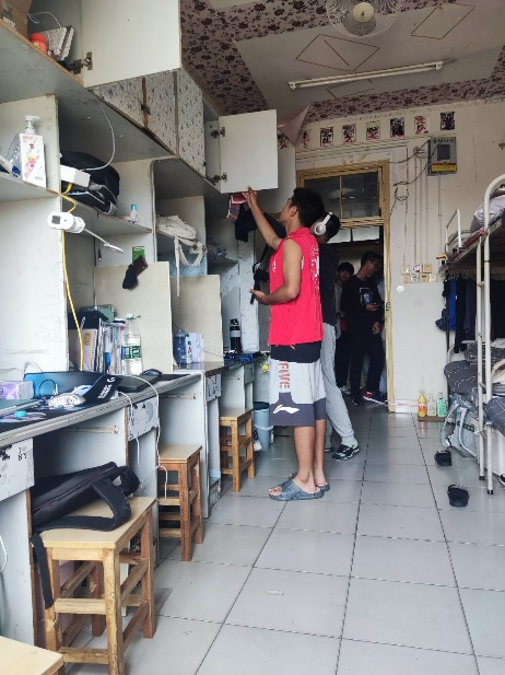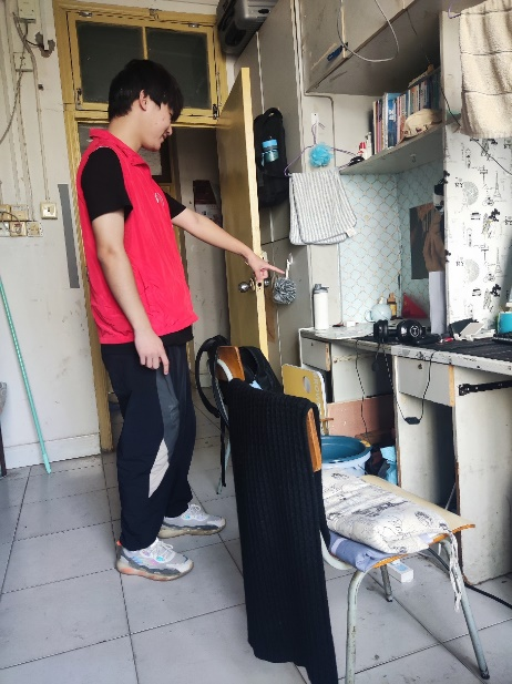 为维护宿舍安全,保障全体同学生命安全,我院组织志愿者进宿舍,对各个宿舍的安全情况进行分析,仔细检查是否存在一些违规的大功率电器,对有违规电器的宿舍进行安全教育,由志愿者讲述宿舍用电不规范可能给自己带来的生命危险及可能给学校与自己带来的财产损失;检查宿舍的卫生环境,对于环境较差的宿舍,志愿者帮助同学们打扫一次寝室环境卫生,告知他们如何有效打扫卫生,怎么样用短时间的打扫换取更加温馨美好的宿舍环境。