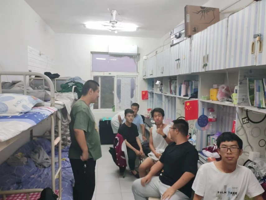 材料学院负责学校学生宿舍五号楼,每轮全员核酸开展时,由各个单元负责人组织志愿者前往五栋的各个宿舍,提醒各位同学去往指定地点做核酸,同时与各寝室长联系,确认当天在校内的各个宿舍的人数,确保五栋所有的在校学生全部完成核酸,无一人遗漏,共同建设常态化疫情防控体系。