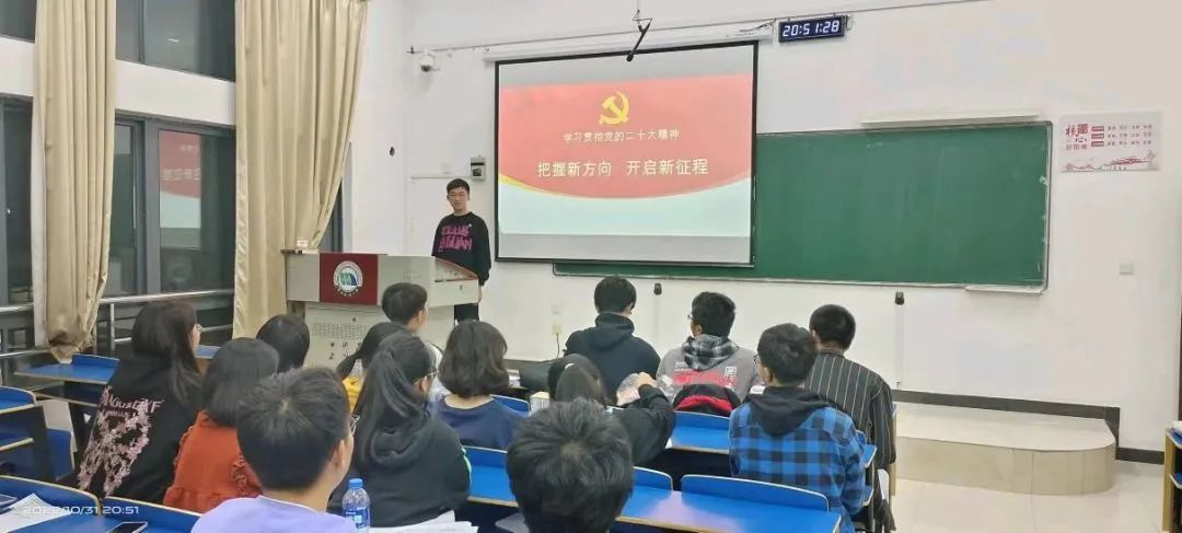 为深入学习贯彻党的二十大精神,材料学院团支部围绕着党的二十大精神的主题,以辅导员、团支书宣讲,同学感悟交流的形式开展学习并贯彻党的二十大精神的活动。
