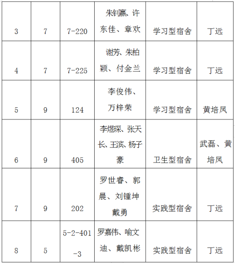 学团工作 当前位置: 首页 > 学团工作 > 正文 材料学院2022年度文明宿舍评选公示 2022-12-06 16:51 周燕萍 材料学院2022年度文明宿舍评选公示 为积极建设营造安全、有序、整洁、温馨、和谐的宿舍文化氛围,打造良好的育人环境,材料学院于12月5日进行文明宿舍评选,本次评选由武磊、孟书慈、丁远、黄培凤四位老师担任评委。 文明宿舍评比活动坚持“贴近学生、贴近实际、贴近生活”的原则,培养学生良好的学习、生活习惯,提高学生的安全防范意识,增强学生的团队精神和集体观念,促进和谐校园建设。 经过各个宿舍的积极答辩,本次评选顺利结束,评选结果如下: