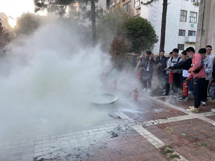 随后,张警官带领师生们进行实地消防演练,指导学生们如何正确使用干粉灭火器及水基型灭火器。