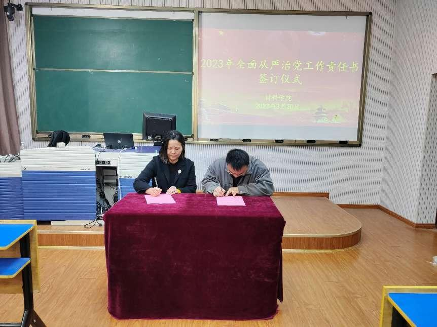 会议最后,各党支部书记、部门负责人依次与学院党委签订《2023年度全面从严治党责任书》。
