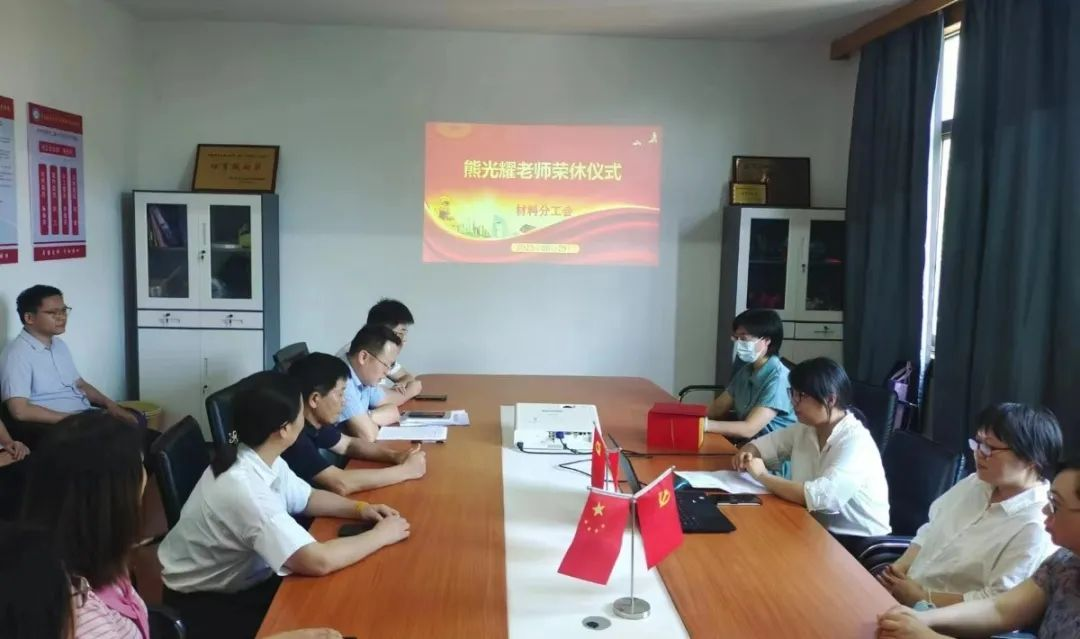 为感谢和欢送为我校教育教学工作作出贡献的退休教师熊光耀老师,材料学院分工会于2023年6月29日上午11:00,在教7栋318举办了熊光耀同志光荣退休欢送会。