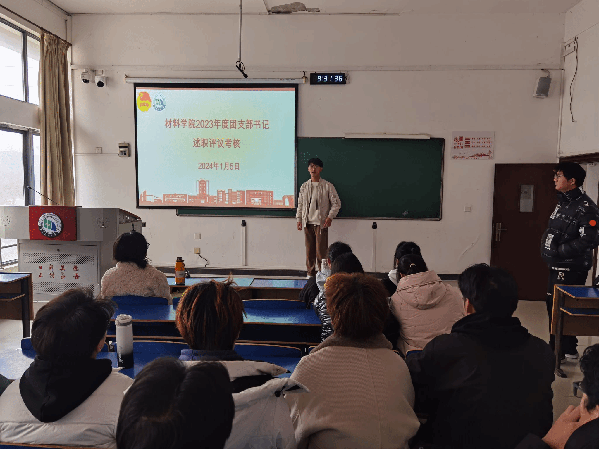 为深入学习贯彻习近平新时代中国特色社会主义思想和党的二十大精神,进一步激发基层团组织活力,切实抓牢团干队伍建设,规范团组织建设,增强我院团组织的凝聚力和执行力,检验2023年度各班团支部工作成效,1月5日,华东交通大学材料学院召开2023年度团支部书记述职考核大会。学院团委副书记丁远老师出席会议。