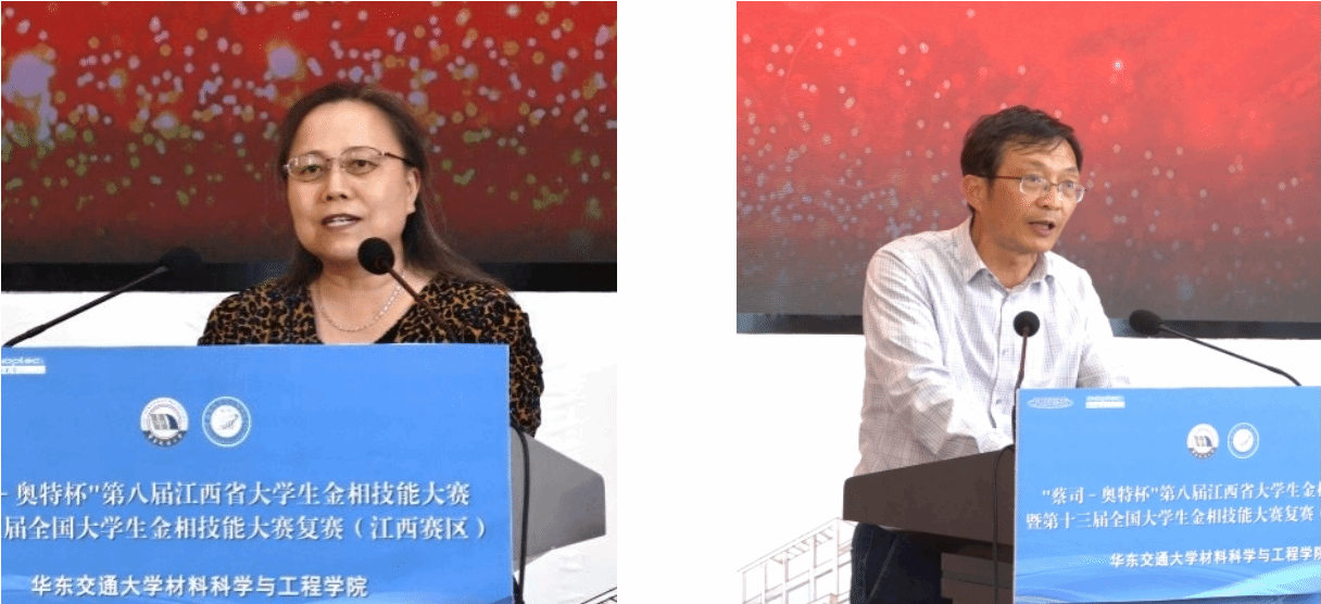 随后,江西省大学生金相技能大赛竞赛委员会秘书长、南昌大学李样生教授宣布评审委员会、监督委员会名单。江西省第七届金相技能大赛总分第一高校南昌职业大学指导教师代表张大林讲话。
