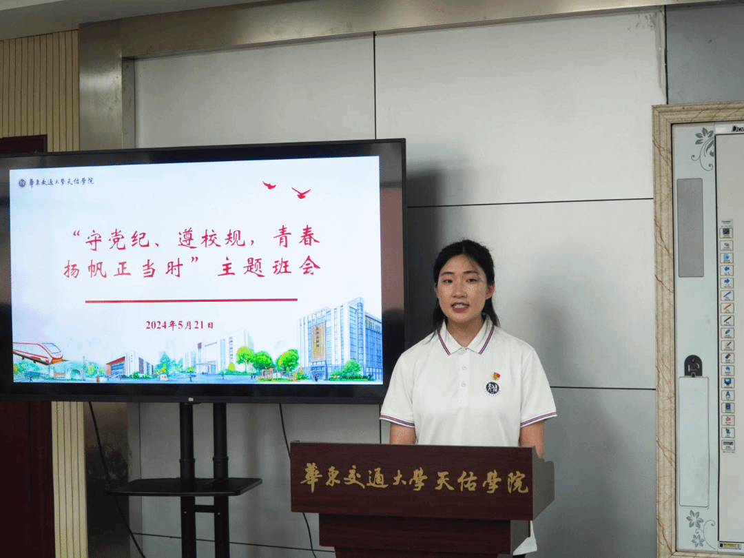 为进一步加强学生纪律教育,培养学生的规矩意识和法治精神,2024年5月21日下午,天佑学院2022级天佑学子班、材料学院2020级焊接1班、继教学院2022级铁道车辆技术专业7班于教24栋401教室联合举办了以“守党纪、遵校规,青春扬帆正当时”为主题的班会活动。本次活动荣幸邀请到了校党委委员、副校长黄志超,材料学院院长沈明学、院党委书记程浩、院党委副书记胡国庆,继续教育学院院长田艳霞、院党委书记程志贤,天佑学院常务副院长汤兆平、院党委副书记王巍,以及各学院教师代表。