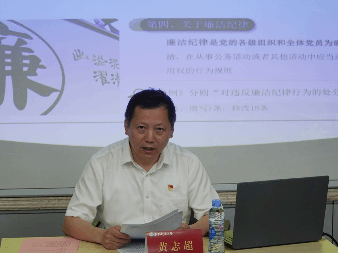 活动伊始,校党委委员、副校长黄志超就结合当前党纪学习的契机,为同学们上了一堂生动的党纪教育党课。随后,各学院学生代表通过多种形式积极发表自己的观点与感悟。