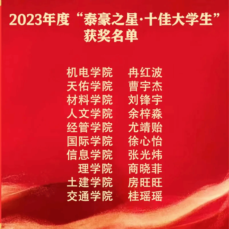 喜报|我院刘锋宇荣获“泰豪之星 十佳大学生”,朱彩君荣获“泰豪之星 十佳大学生提名”