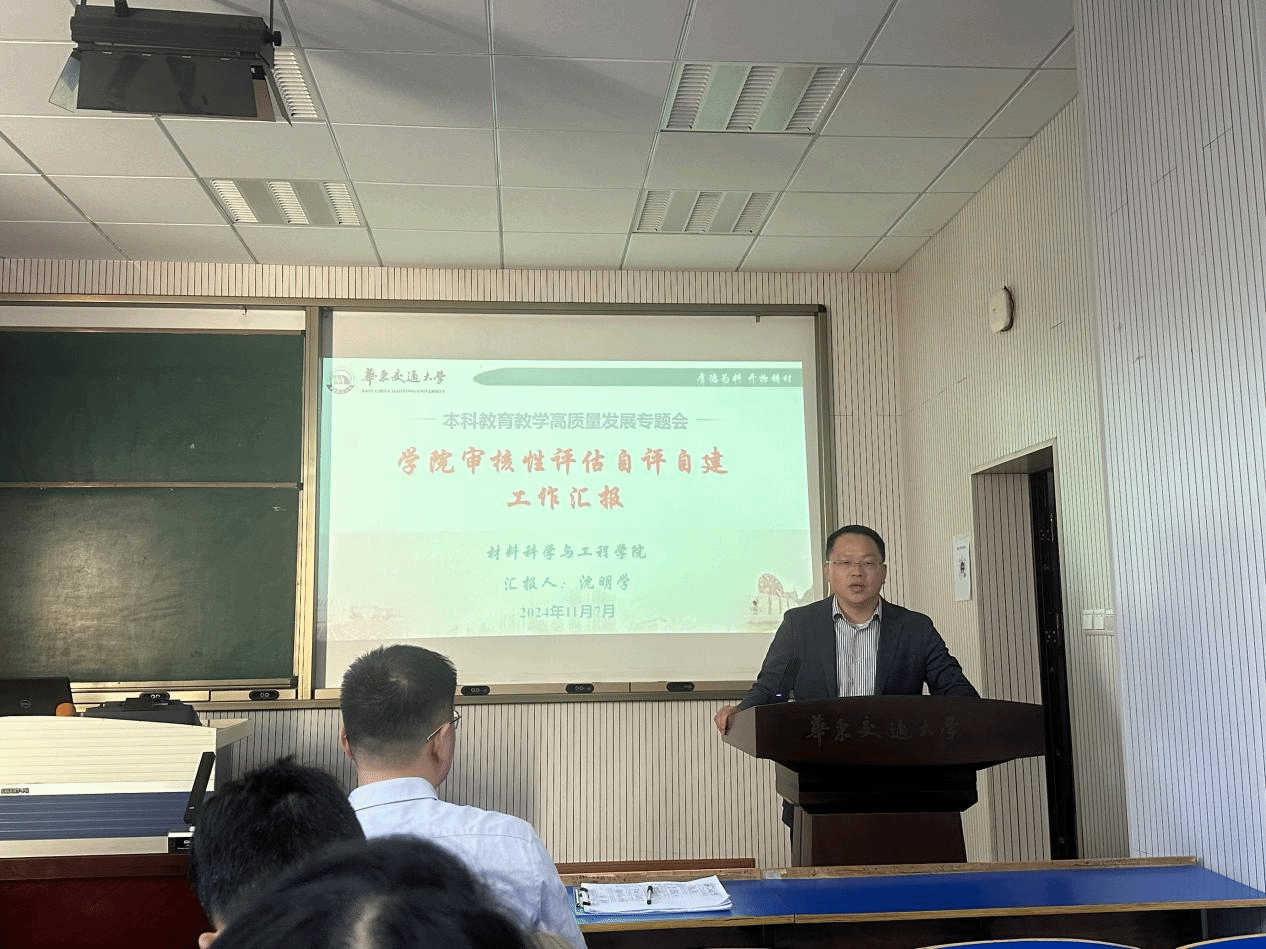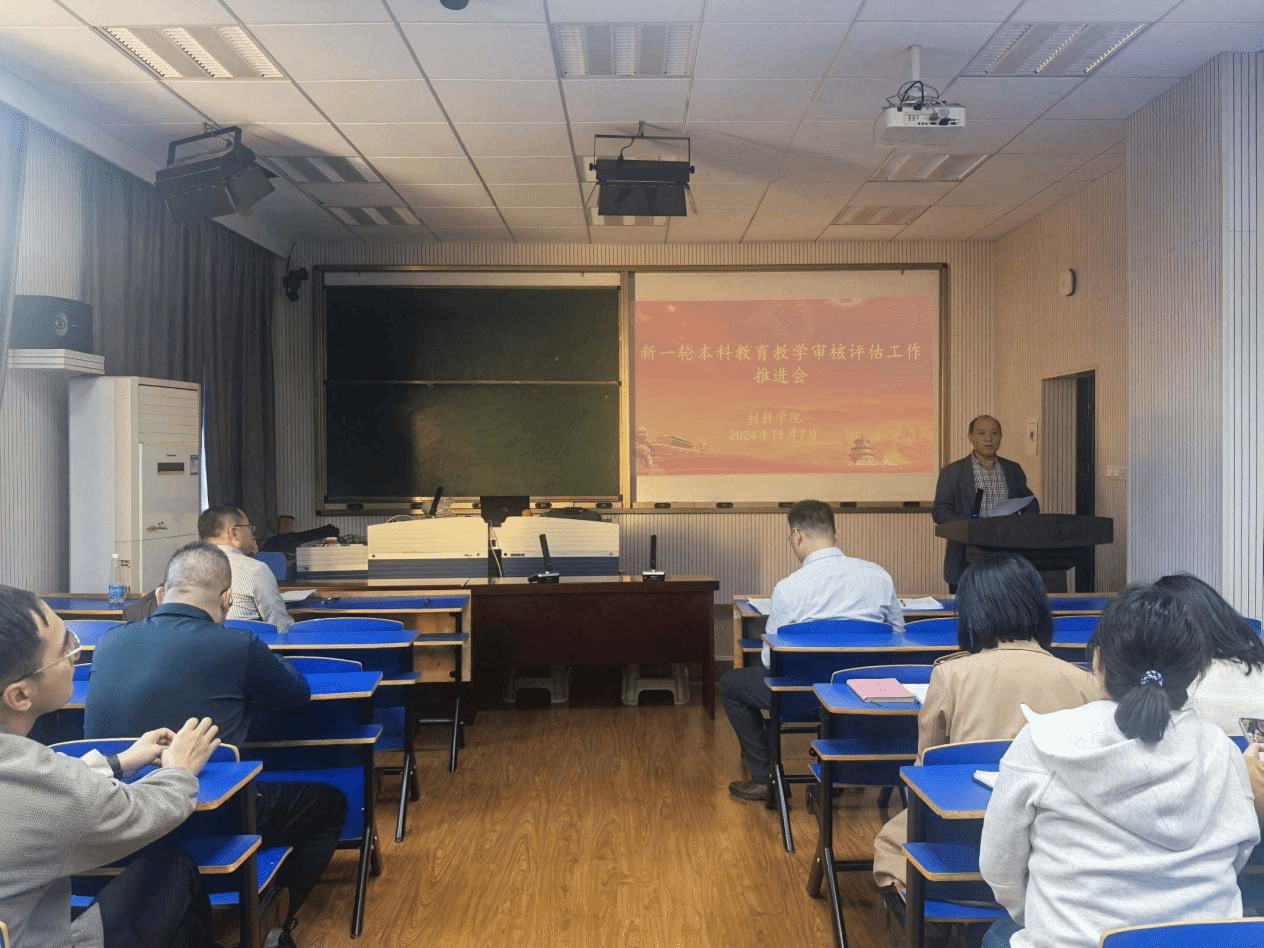 为全力以赴做好迎评工作,确保新一轮本科教育教学审核评估顺利通过,2024年11月7日材料学院召开新一轮本科教育教学审核性评估工作推进会。本次会议由副院长唐延川主持,院长沈明学、党委书记赵龙志以及学院全体教职工参加会议。