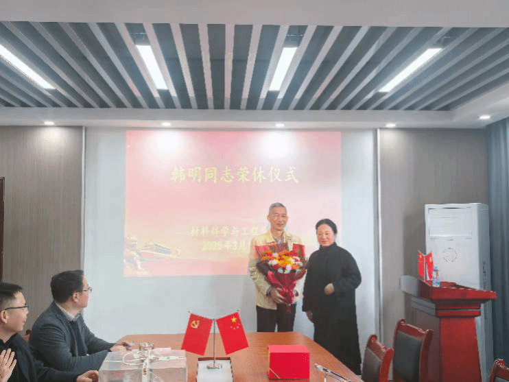 2025年3月19日,我院在7栋319为材料成型及控制工程系韩明老师举办了一场温馨而隆重的荣休仪式。学院领导班子、学院分工会成员及材控系全体教师齐聚一堂,共同见证韩明老师光荣退休的重要时刻,表达对韩老师数十年辛勤耕耘的敬意与祝福。本次仪式由分工会主席周枚花老师主持。
