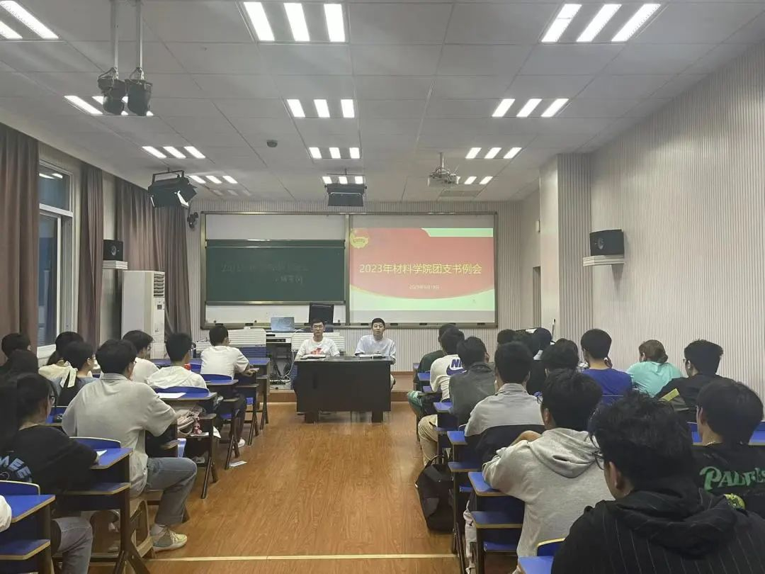 材料学院团委于4月19日在7-301举办第二学期第一次团支书工作例会。团支书例会后进行2023年发展新团员答辩工作。材料学院团委书记武磊老师、团委副书记丁远老师参加会议。