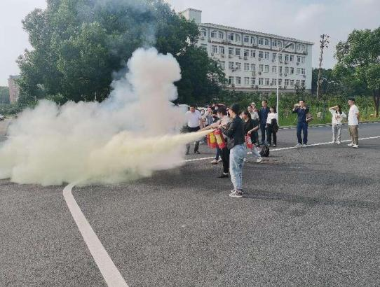 随后,谌巍老师及校保卫处带领师生们进行实地消防演练,指导学生们如何正确使用干粉灭火器。