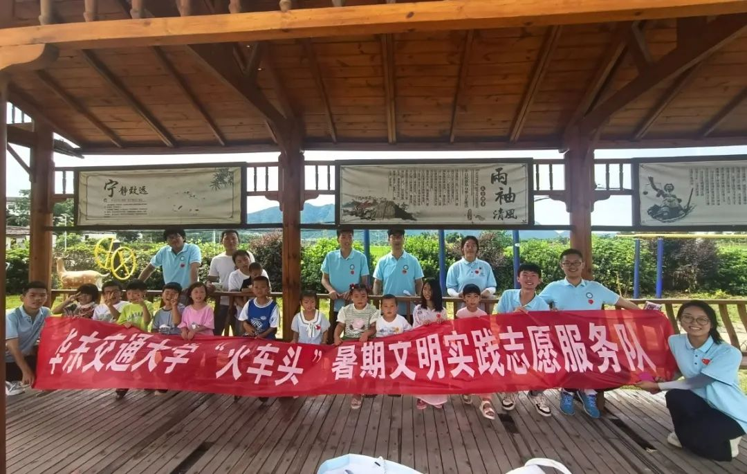 年儿童和少先队工作的重要论述,切实关爱困境儿童、留守儿童群体,材料学院“火车为深入学习贯彻党的二十大精神和习近平总书记关于少头”暑期文明实践志愿服务队以“爱润童心”为主题关爱留守儿童,通过给他们做化学小实验、变魔术、带他们做游戏、唱歌等活动来关爱和鼓励他们。