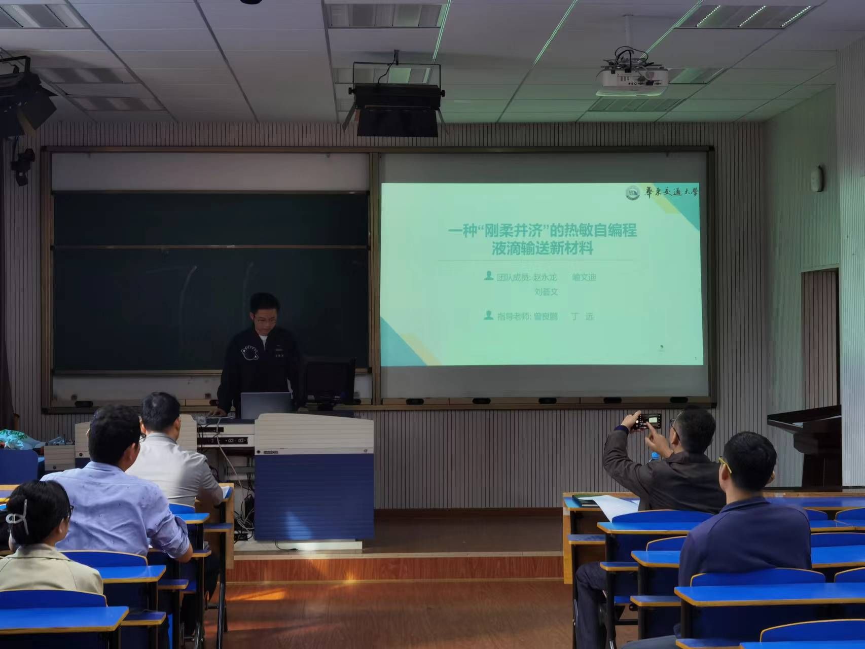 经过激烈角逐,最终由黄志超老师指导的《稳静护航---高NVH性能商用车驱动桥引领者》获一等奖;王少会老师指导的《生材有稻----助农有道》和杨志伟老师指导的《心血管疾病患者福音----一体化双层小口径血管》获二等奖;胡晓明老师指导的《癌症先知---面向肿瘤可视化诊疗的纯有机纳米药物》获三等奖。