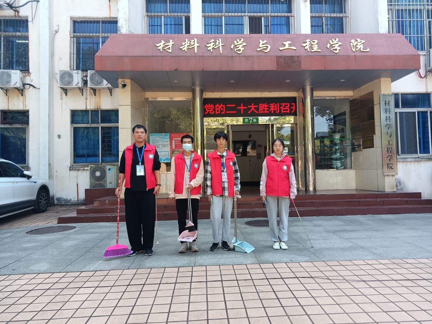 团学工作 当前位置: 首页 > 学团工作 > 团学工作 > 正文 志愿服务|教7栋清扫② 2023-03-16 13:57 为了给同学们带来更好的学习环境,体现志愿者的服务精神,3月16日,材料学院的青年志愿者协会全体成员在材料学院楼(教7栋)及周边志愿服务区举办了志愿服务区清理活动。志愿者在活动负责人的带领下,有序进行着清理活动,校园里处处涌动着忙碌的身影。同学们不畏风雨,为校园整洁明亮的环境辛勤劳动,挥洒着自己的汗水。