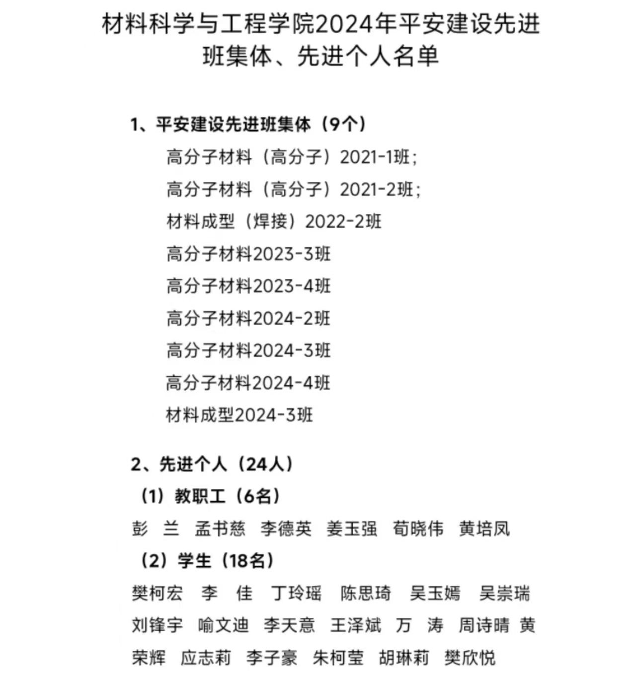 材料科学与工程学院2024平安建设总结暨表彰大会