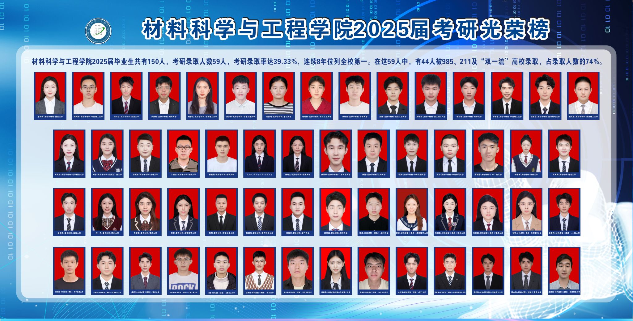 考研光荣榜 当前位置: 首页 > 就业创业 > 考研光荣榜 > 正文 华东交通大学材料科学与工程学院2025届考研光荣榜 2025-09-19 10:21 华东交通大学材料科学与工程学院2025届考研光荣榜 附件【3a4cb3186dfa8318b094f69f4b91d21b.jpg】已下载次