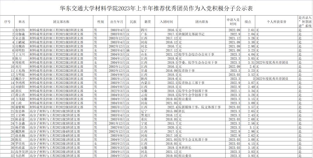 通知公告 当前位置: 首页 > 通知公告 > 正文 材料学院2023年上半年推荐优秀团员作为入党积极分子公示 2023-04-18 23:07 公示期:2023年4月18日-2023年4月23日,如有问题请到学8栋226办公室反馈,联系电话:0791-87046828