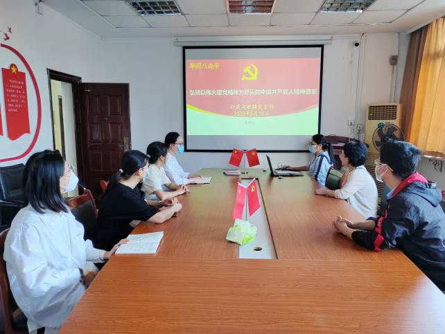 支部党员雷娟红老师开讲题为“弘扬以伟大建党精神为源头的中国共产党人精神谱系”教育分享。